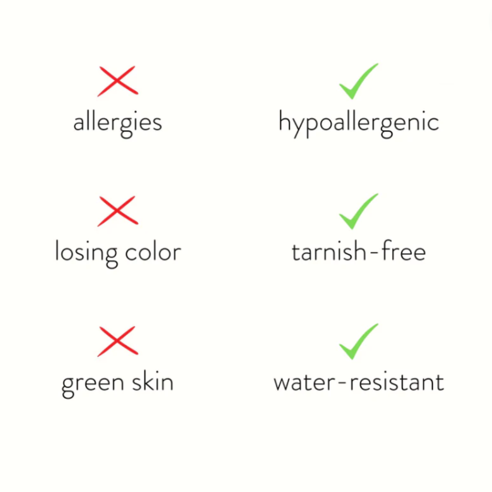 Ich trage diese Kette fast jeden Tag; sie verfärbt sich nicht und reizt nicht. Ein Geschenk meines Mannes, das ich nicht mehr ablegen möchte.
